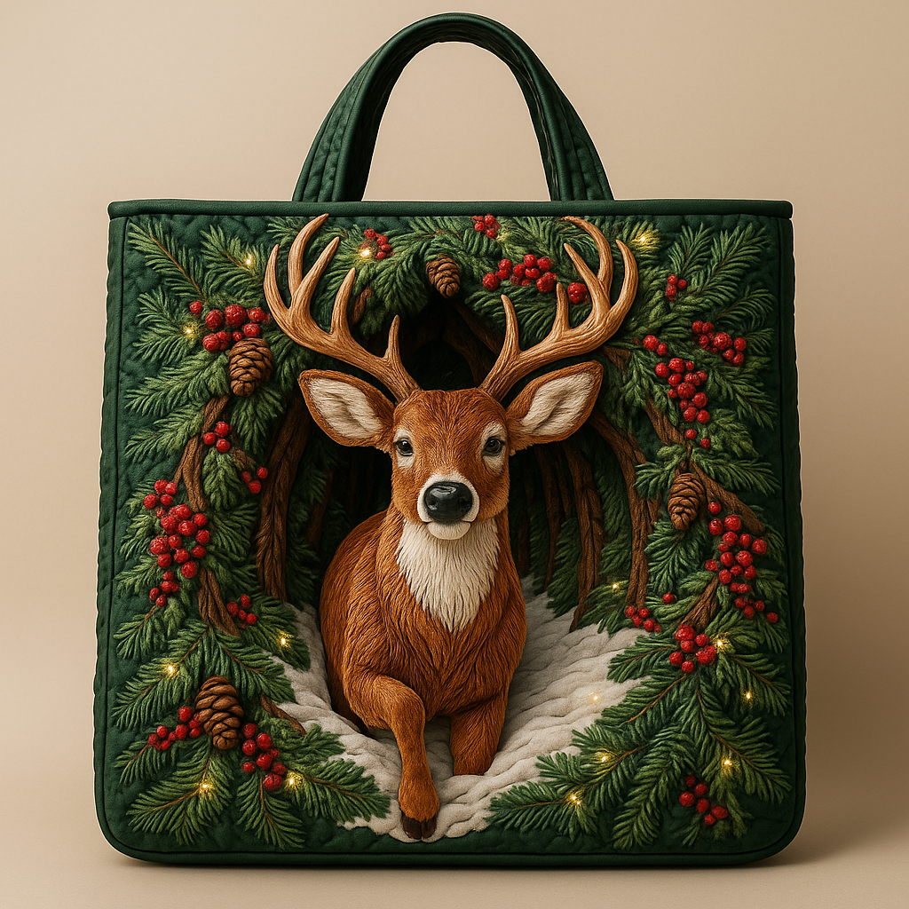 Deer Forest Quilted Tote Bag — Holiday Woodland Charm