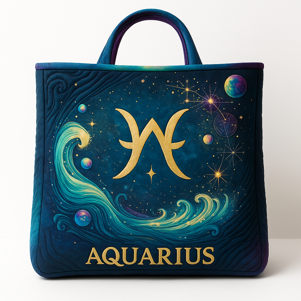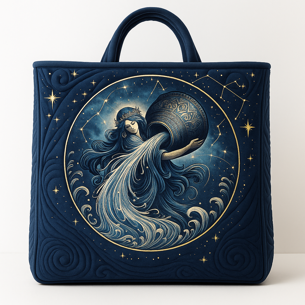 Aquarius Zodiac Quilted Tote Bag – Flow of Innovation
