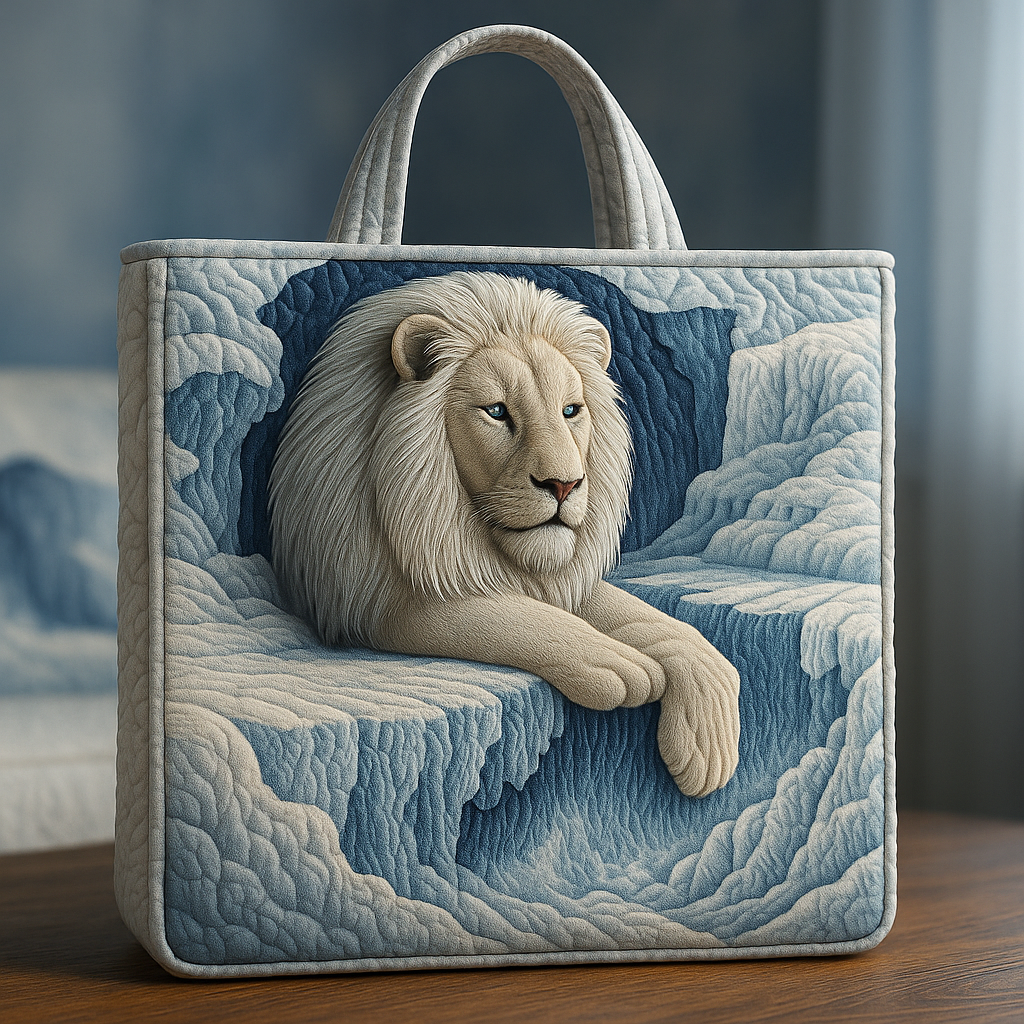 Majestic White Lion Quilted Tote Bag